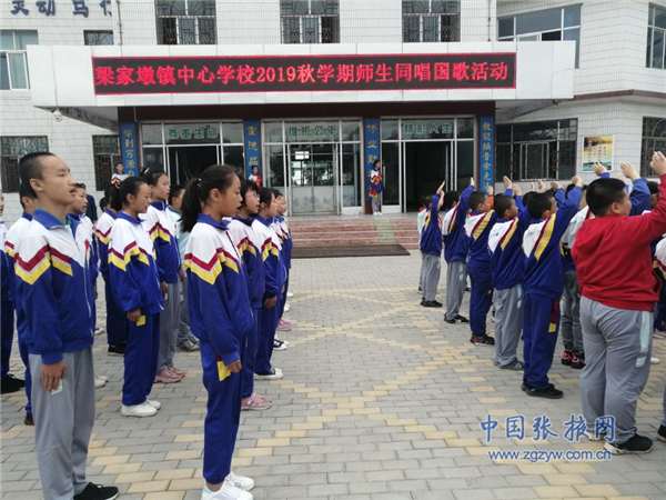 梁家墩鎮(zhèn)中心學(xué)校開展了“同升國旗、同唱國歌”活動