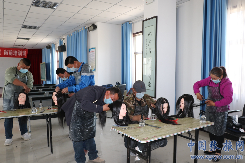 中國張掖網肅南訊 近日,肅南縣明花鄉聯合西游文化職業培訓學校對新選聘的14名“愛心理發員”鄉村公益性崗位人員開展了崗前培訓。