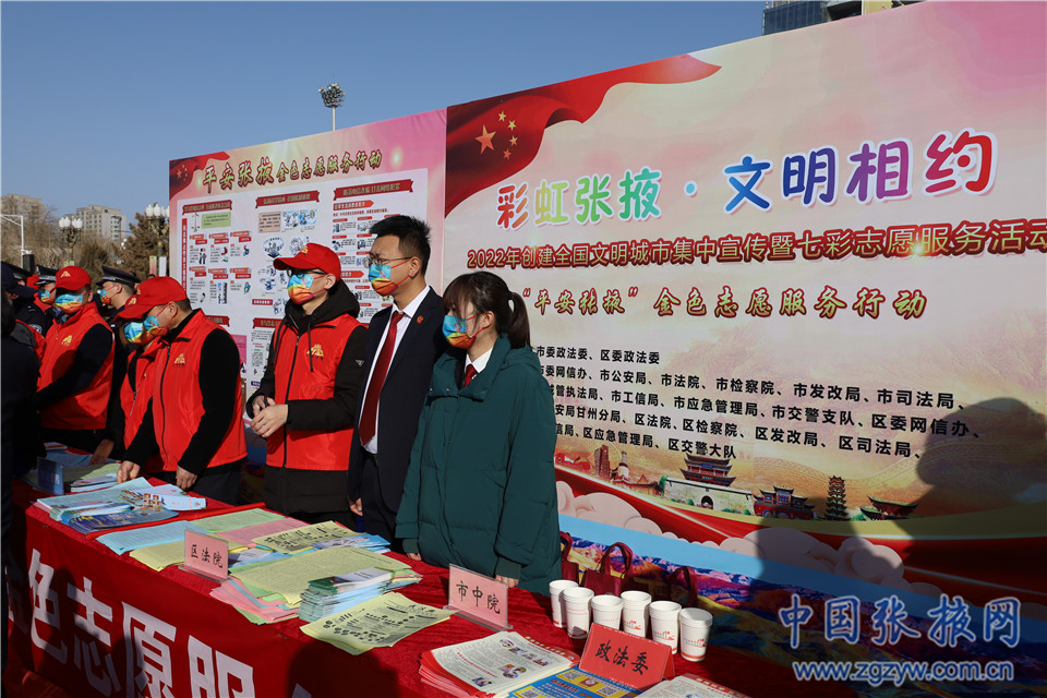 當天,“彩虹張掖·文明相約”2022年創建全國文明城市集中宣傳暨七彩志愿服務活動正式啟動,全市200多個部門單位、街道鄉鎮緊緊圍繞“彩虹張掖·文明相約”主題,廣泛開展紅橙粉綠金藍紫七彩志愿服務行動,吹響了志愿服務助力創建全國文明城市的集結號。