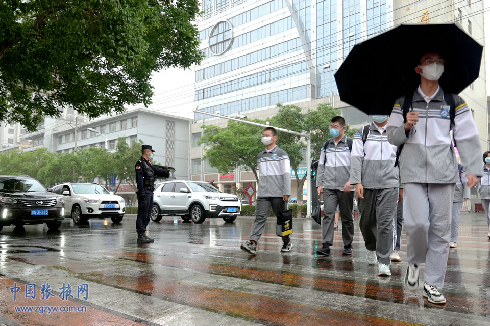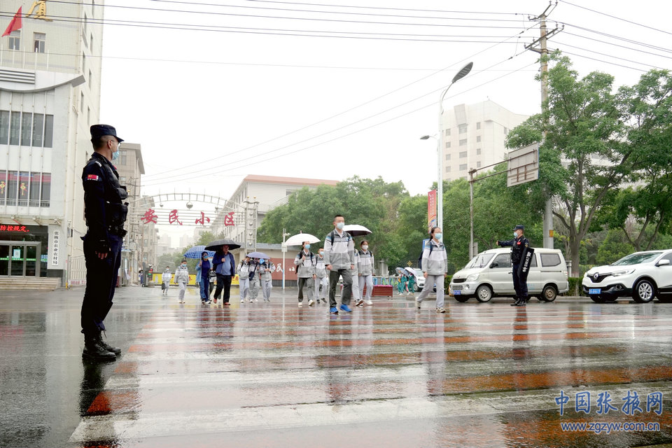 中國張掖網訊 5月25日早上,張掖普降小雨,道路積水濕滑,給中小學生上下學帶來極大的不便和安全隱患。擔負護學任務的張掖市公安局特警支隊的特警隊員提前到崗到位,在甘州區各學校周邊護送學生上下學。陰雨天接送學生車輛多、駕駛員視線差,巡特警隊員在維護安全的同時積極疏導交通,為廣大師生撐起“安全傘”,確保了道路暢通和學生安全,用實際行動暖心護學。(馬興國)