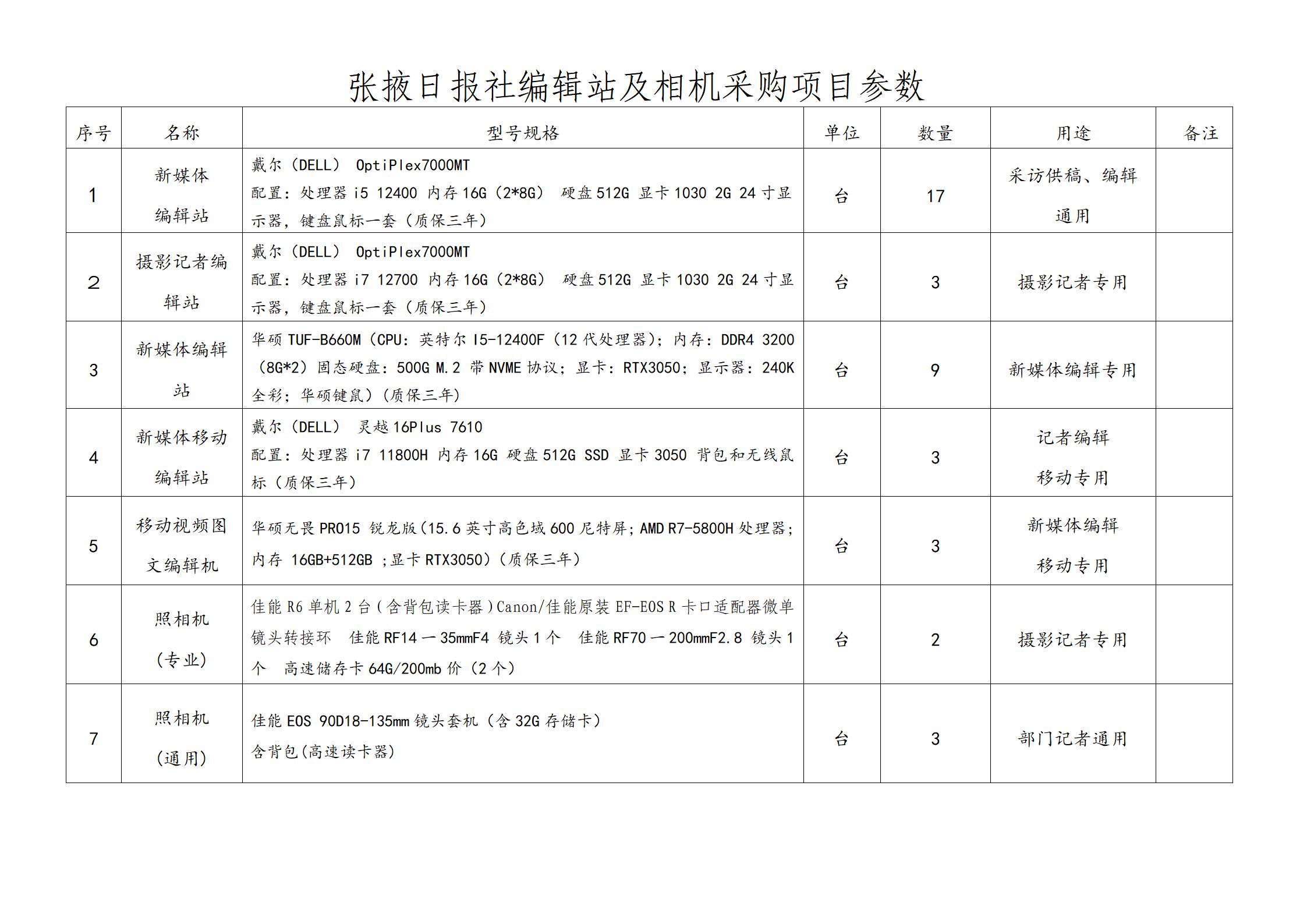 附件:張掖日?qǐng)?bào)社編輯站及相機(jī)采購(gòu)項(xiàng)目參數(shù)