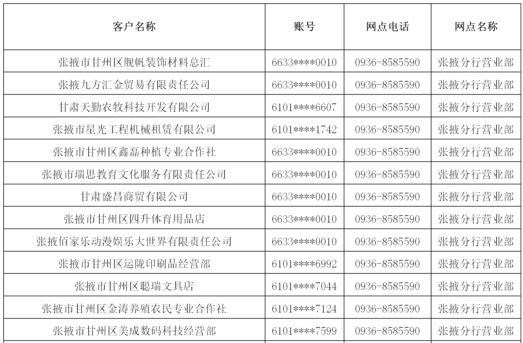 甘肅銀行股份有限公司張掖分行關于清理單位人民幣銀行結算賬戶的公告