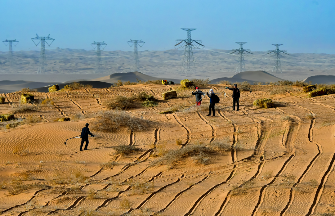 作品說明:該組作品于2022年3月拍于甘肅省臨澤縣北部的壕哇沙漠,作品以組照的形式全面反映了治沙人在沙海中種植草方格、栽植梭梭、澆灌的勞動場面。臨澤縣位于河西走廊中部,巴丹吉林沙漠南緣,境內沙漠、戈壁面積占三分之二以上,生態環境極其脆弱。“風起沙石揚,埋地又壓房。”曾是當地群眾深受沙塵侵襲之苦的真實寫照。