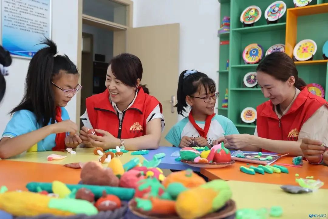 在黨寨鎮(zhèn)新時代文明實踐所里,游戲區(qū)的樂高、讀書角的繪本等設(shè)施一應(yīng)俱全,黨寨鎮(zhèn)中心學(xué)校的老師正陪著孩子做手工、讀繪本、學(xué)書法。