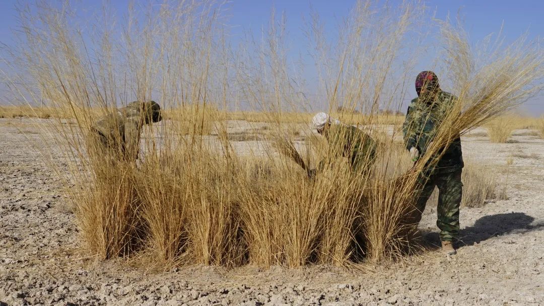芨芨草是一種耐旱、根深、耐寒、不懼鹽堿的野草,即便是在最貧瘠的土地上,也能茁壯成長。它用途豐富,可以扎掃帚、制作工藝品、造紙。據了解,每斤芨芨草在市場上可以賣到1塊多錢,一個人一天輕輕松松就可以割兩三百斤,就是兩三百塊錢的純收入,一個冬天下來,收入一萬多元,很輕松。