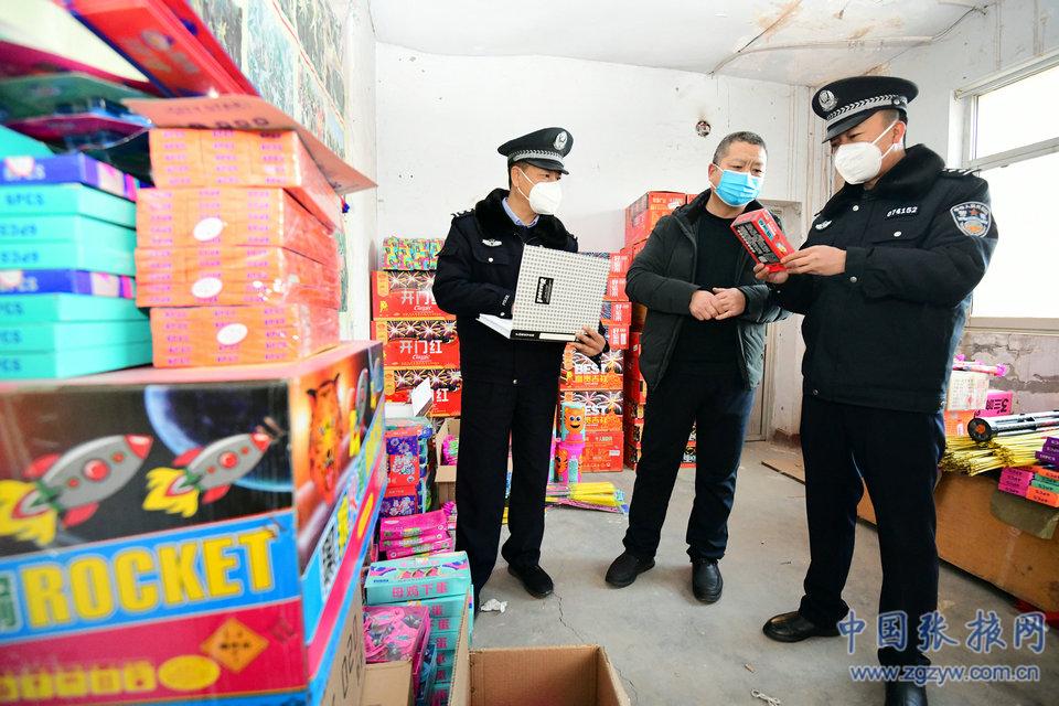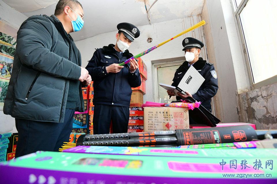 中國張掖網臨澤訊 為切實加強社會治安管控,嚴厲打擊非法制販、儲存、運輸、燃放煙花爆竹等違法犯罪行為,1月4日,臨澤縣公安局蓼泉派出所民警深入轄區煙花爆竹零售商鋪,檢查煙花爆竹銷售許可證、營業執照等證件是否齊全有效、是否張貼禁煙禁火標識、是否存在銷售三無產品的經營行為。同時,民警堅持檢查與宣傳相結合,廣泛宣傳煙花爆竹安全知識及燃放規定,進一步夯實安全基礎工作,全力確保歲末年初轄區和諧穩定。(安學海 攝)