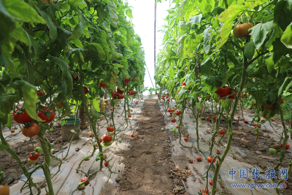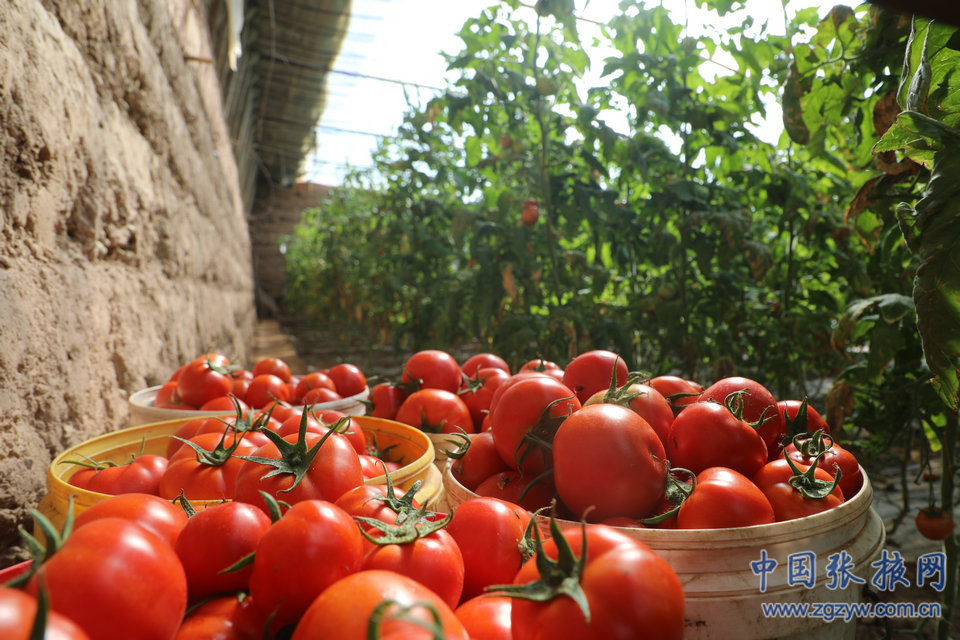 中國張掖網臨澤訊 時下,正值溫室大棚種植的西紅柿成熟的時節,在臨澤縣倪家營鎮汪家墩村絲路寒旱農業示范園區的大棚內,一排排西紅柿支架上,層層疊疊掛滿了紅彤彤的西紅柿,甚是喜人。工人們正忙著采摘,呈現出一派繁忙的豐收景象。