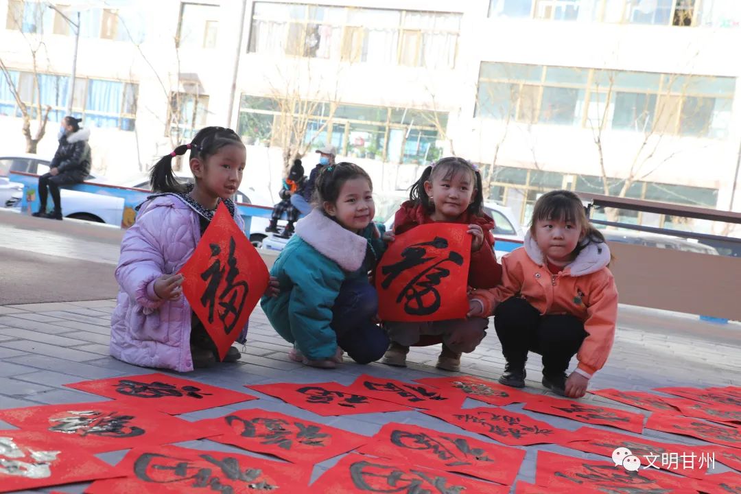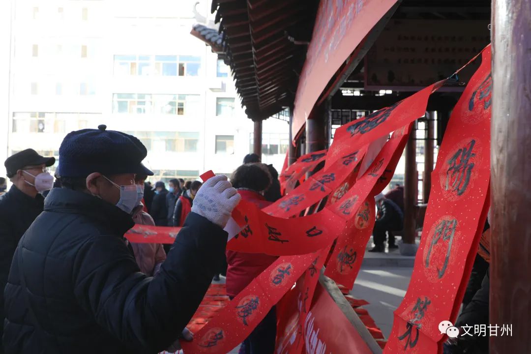 活動邀請甘州區文聯6名書法家現場開展“贈聯送福賀新春”文藝志愿活動,為轄區居民義寫春聯、福字。書法家們揮毫潑墨,將真誠的祝福賦予筆端,多種字體各顯神韻,一個個飄散著清新墨香的“福”字,一副副筆酣墨飽的春聯,映襯出濃濃的節日氛圍。