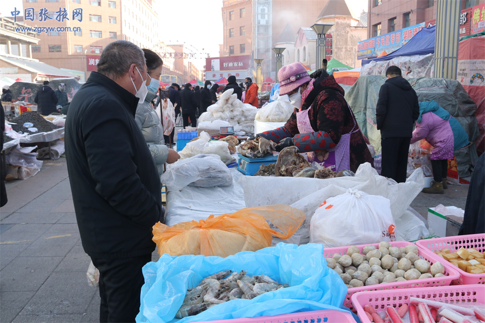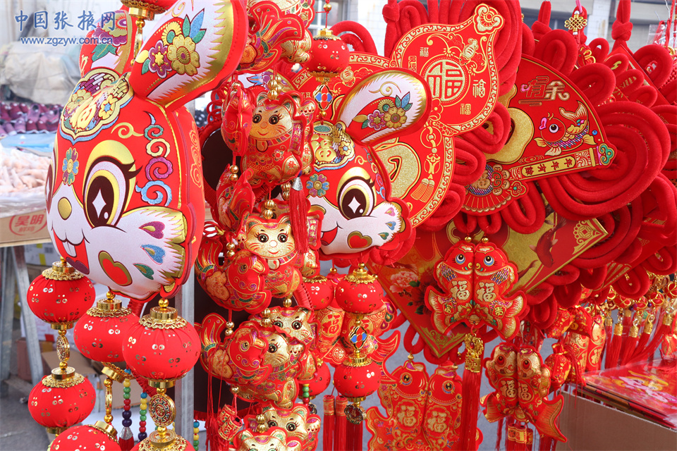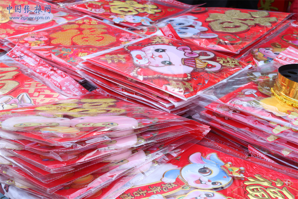 走進民樂縣南市場所設的年貨市場內,到處都是一派熱鬧而繁忙的景象,各攤位早已擺滿了帶“兔元素”的福字、窗花、紅包、對聯,有“福”字的中國結及燈籠、新春擺件等節慶用品一派紅火。同時,蔬菜、肉類、臘味、水果等特色優質農產品也應有盡有,干貨、水產等年貨也是種類豐富,吸引了不少來來往往的市民駐足購買。
