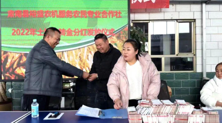 簽字、按手印,然后領取分紅,社員們清點著分紅款,心里樂開了花。身穿紅棉襖的索文花難掩臉上的笑意,今年領到31.6萬元,是分紅最多的社員,她拿著沉甸甸的“大紅包”說:“自己種地也有一定風險,我把500畝土地入股到合作社10年,每年都有穩定的租金和分紅,已經領了好幾年了,既省心又省力?!?!--enorth cms news protect start-->