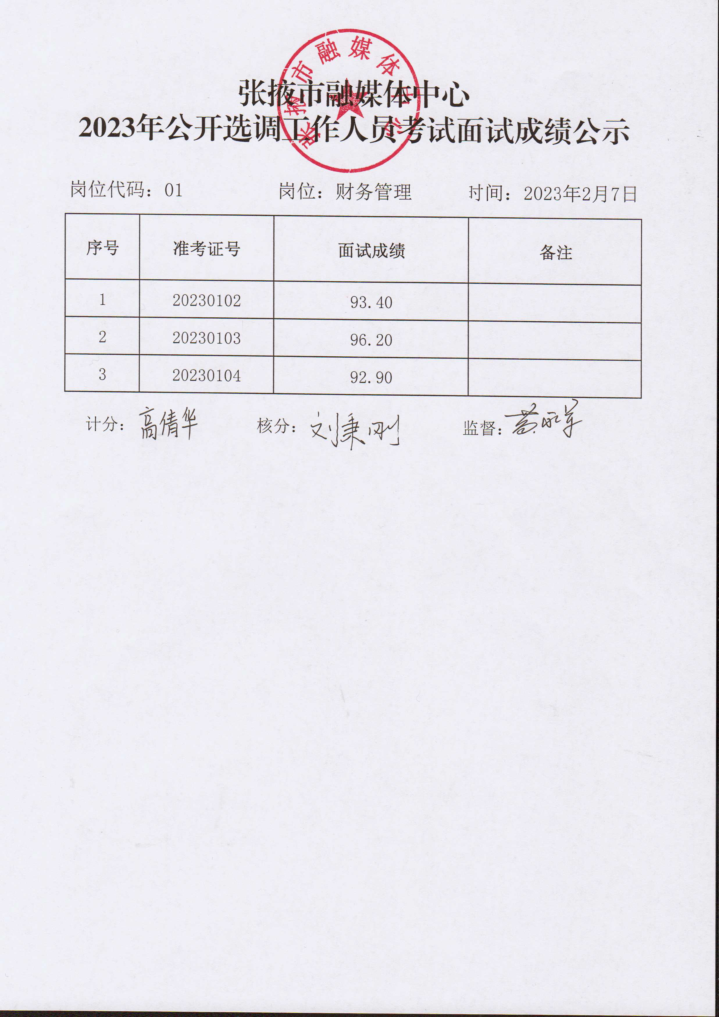 張掖市融媒體中心2023年公開選調工作人員筆試成績公示
