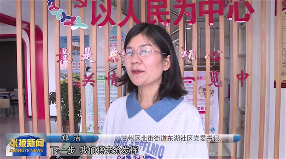 甘州區北街街道東湖社區黨委書記鄭潔:“下一步,我們將充分發揮城市基層黨建的政治優勢、組織優勢和密切聯系群眾優勢,打造組織有力量、服務不打烊、有事好商量、民呼必有應、幸福暖萬家的和合社區。”