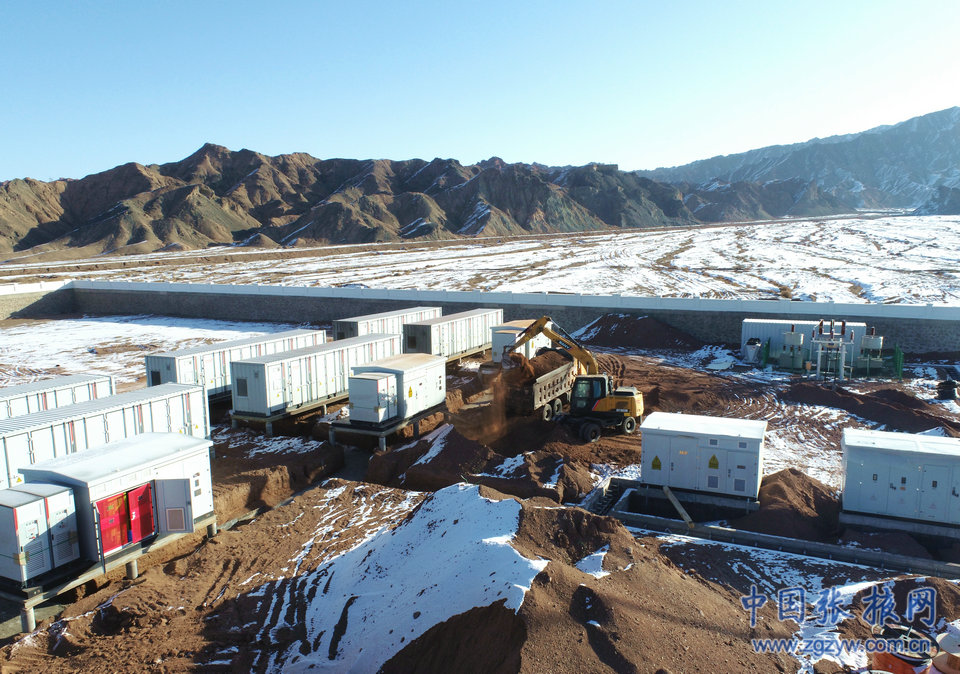 中國張掖網臨澤訊 連日來,在臨澤天海100兆瓦/400兆瓦時共享儲能電站項目施工現場,儲能倉整齊佇立、工程車往來穿梭,工人們正在進行電纜溝砌筑和電線鋪設工作,現場一派熱火朝天的景象。