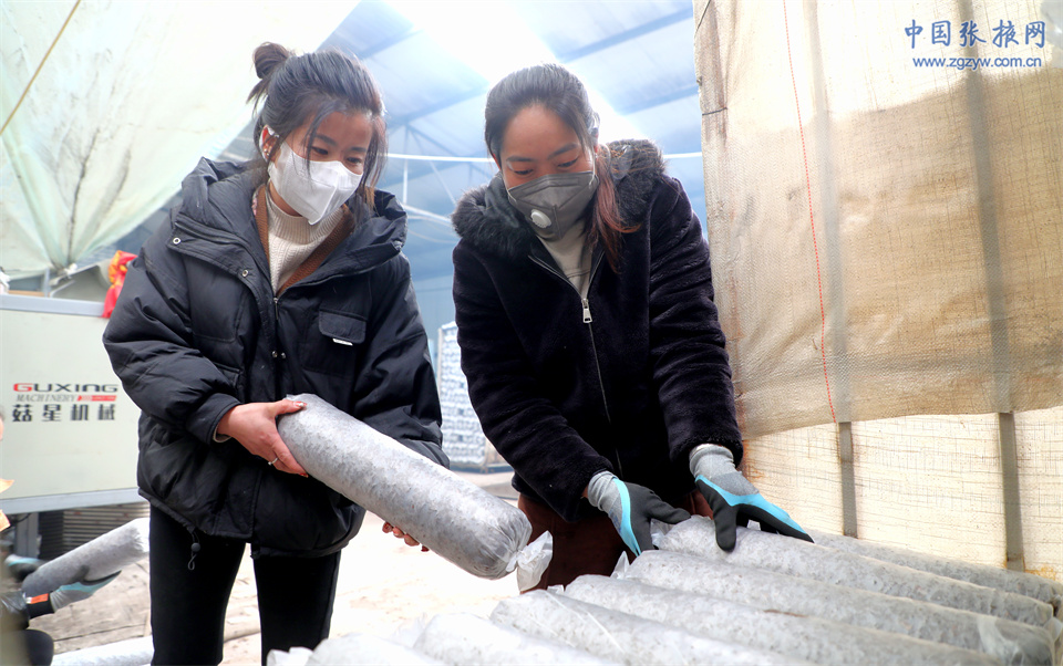 在民樂縣鴻飛生物開發(fā)有限責任公司就業(yè)幫扶車間里,來自六壩鎮(zhèn)五壩村村民王曉玲正在和同事們將菌棒裝車運往生產(chǎn)一線。