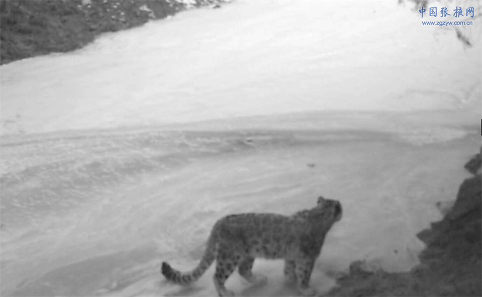 中國張掖網民樂訊 近日,在張掖市民樂縣境內的海潮壩附近,祁連山國家公園甘肅省管理局張掖分局大河口保護站管護員通過架設的紅外相機記錄到了一只雪豹捕食巖羊影像。