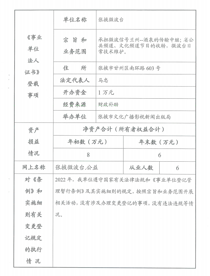 您當前的位置 : 中國張掖網 >> 問政 >> 公告 張掖微波臺2022年度法人年度報告書 來源:張掖市融媒體中心 0 人參與互動 2023年03月31日 14:32