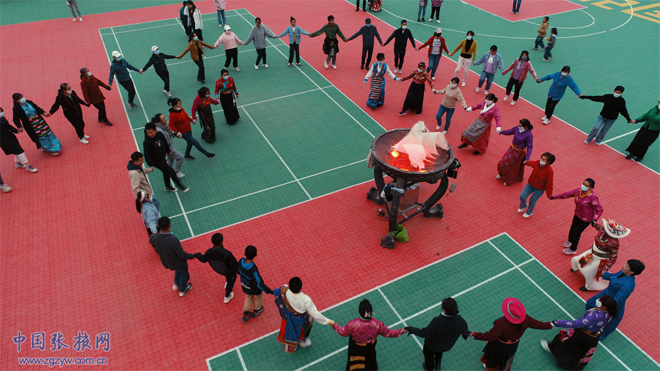 每晚7點30分,在悠揚的音樂聲中,農牧民群眾穿著美麗的民族服飾,圍成圓圈開始歡快地起舞鍋莊舞節奏明快,舞蹈動作優美,農牧民群眾隨著音樂踏歌而舞,有節奏地揮舞長袖,變換舞步,在韻律變化中演變著不同的隊列。長袖飄飄,舞姿翩躚,絢麗柔美的鍋莊舞出了藏鄉兒女似火的熱情,舞出了藏鄉群眾嶄新的姿態。