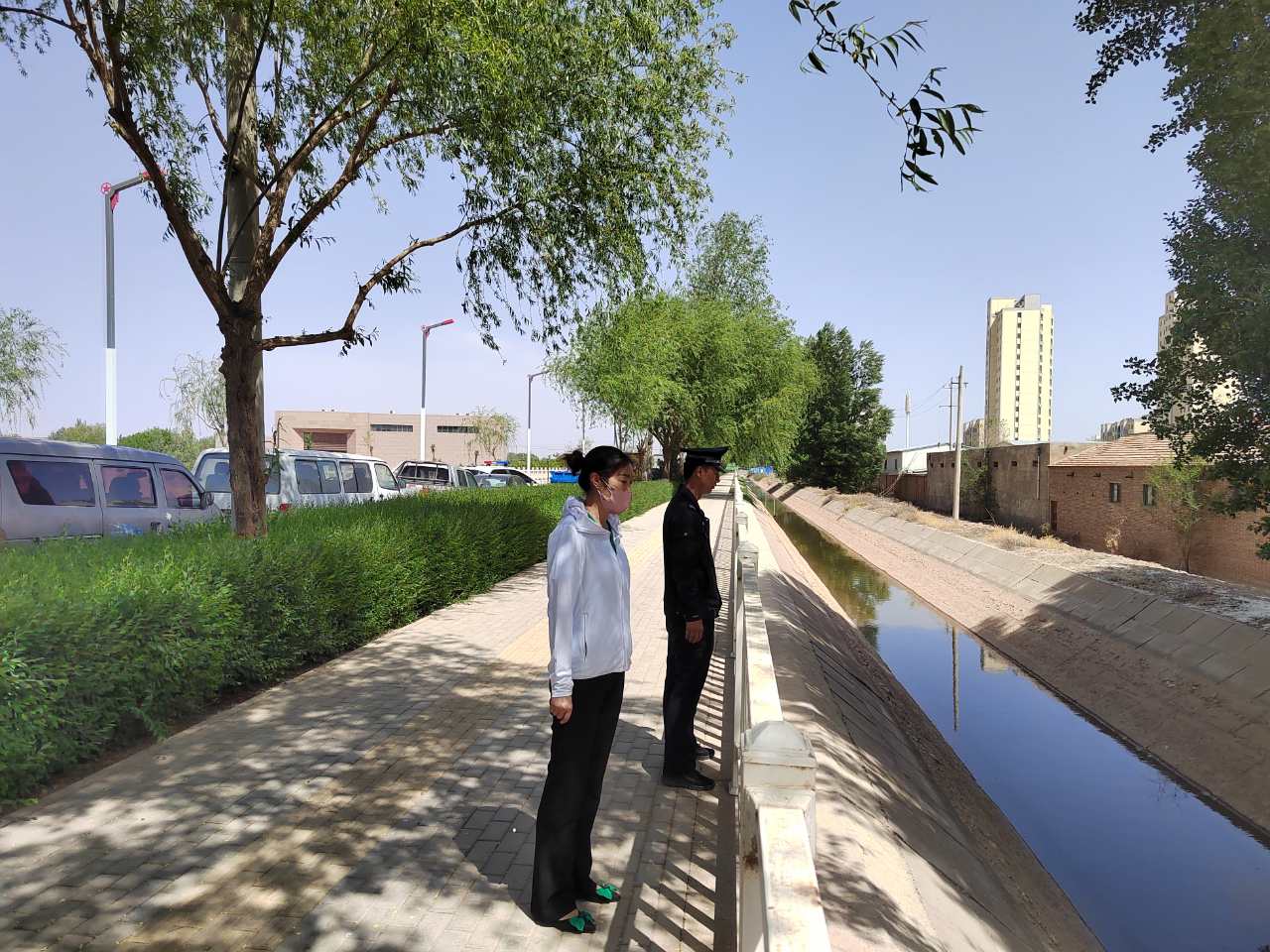 社區工作人員、網格員和民警工作人員來到站家渠(烈士陵園段),檢查沿河環境,巡查河岸林帶、生態環境、衛生等情況,并做了詳細記錄,為整改維護河道干凈整潔打下基礎。(魏建凱)