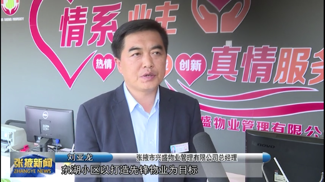 張掖市興盛物業(yè)管理有限公司總經(jīng)理劉亞龍:“東湖小區(qū)以打造先鋒物業(yè)為目標(biāo),加強(qiáng)小區(qū)管理服務(wù),為業(yè)主營造一個(gè)更加干凈衛(wèi)生的居住環(huán)境。”
