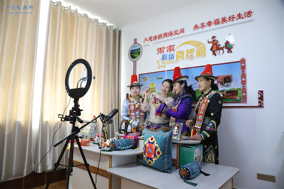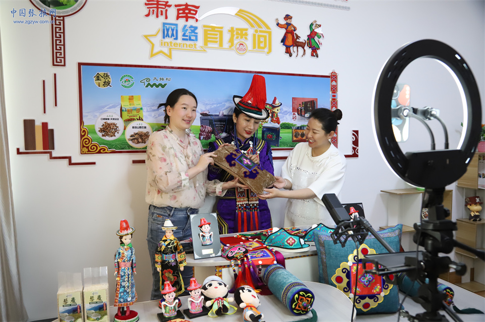 中國張掖網肅南訊 “這是肅南裕固族自治縣富達民族手工藝品傳承有限責任公司非遺工坊研發制作的裕固族非遺文創產品裕固族刺繡抱枕,造型美觀大方,富有地方民族特色,價格優惠,喜歡的朋友趕快下單吧。”紅灣寺鎮紅灣社區網絡直播帶貨間內民族文化產品產銷暨直播帶貨專場活動正如火如荼地舉辦,肅南縣裕固族民族服飾省級傳承人楊海燕通過鏡頭熱情地向各位網友介紹獨具特色的裕固族民族風情及民族文化產品。