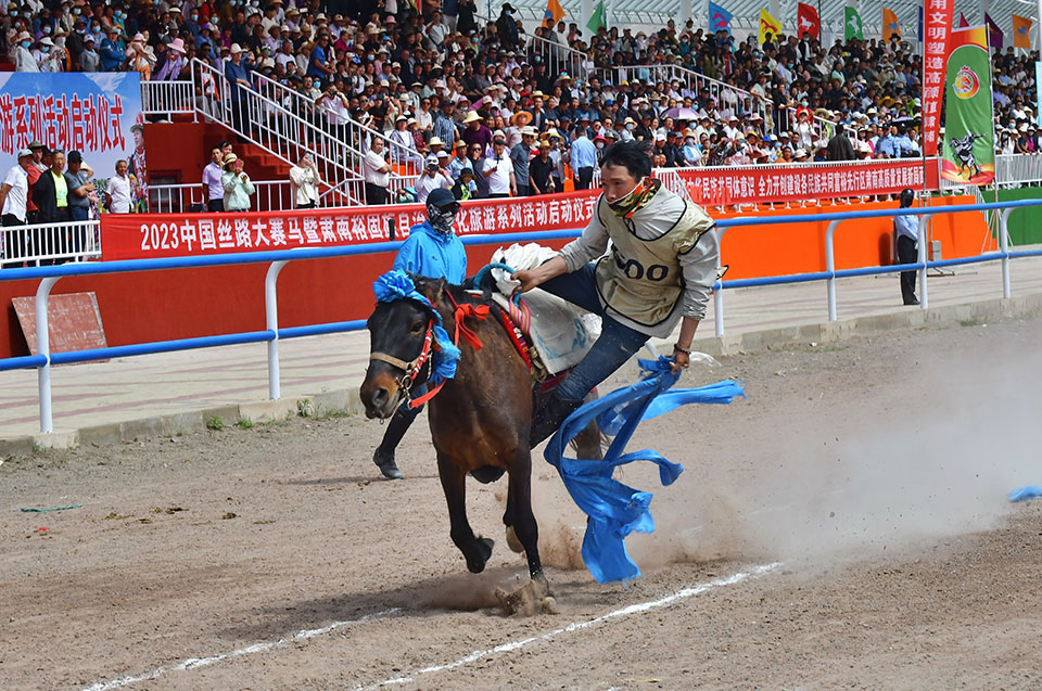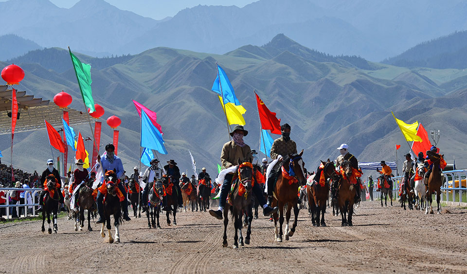 中國張掖網肅南訊 6月19-21日,在中華民族傳統佳節—端午節即將到來之際,2023中國絲路大賽馬—肅南裕固族自治縣賽馬會在甘肅省張掖市肅南縣索朗格國際賽馬場激情開賽,來自甘肅省、青海省、內蒙古自治區的300多名騎手參加比賽,草原兒女揚鞭迎佳節,策馬送祝福,以自己擅長的方式喜迎傳統節日,接待四方賓客。