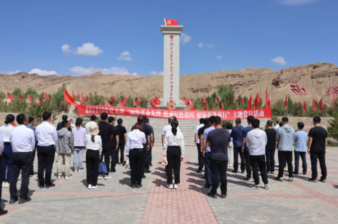 在臨澤縣梨園口戰斗遺址公園,全體黨員參加“緬懷革命英烈傳承紅色基因砥礪奮進前行”紅色之旅主題活動,重溫紅色歷史,接受革命洗禮。在烈士紀念碑前,全體黨員向革命先烈敬獻花籃,面向鮮紅的黨旗重溫入黨誓詞,鮮紅的黨旗與胸前佩戴的黨徽遙相呼應。