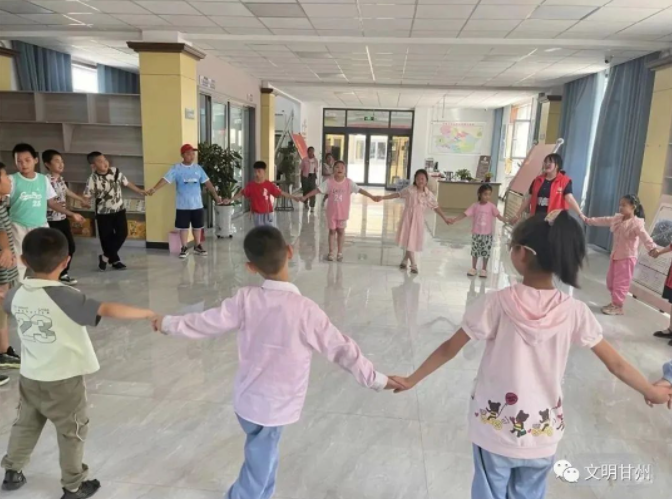 “小朋友們,今天我們來跳一支好玩的互動操,它的名字叫《小城夏天》,現(xiàn)在我們一起動起來吧!”近日,甘州區(qū)大滿鎮(zhèn)新時代文明實踐所功能室內(nèi)不時傳出陣陣歡笑聲,40多名孩子在志愿者的帶領(lǐng)下跳著歡快的舞蹈,享受多彩的假期。
