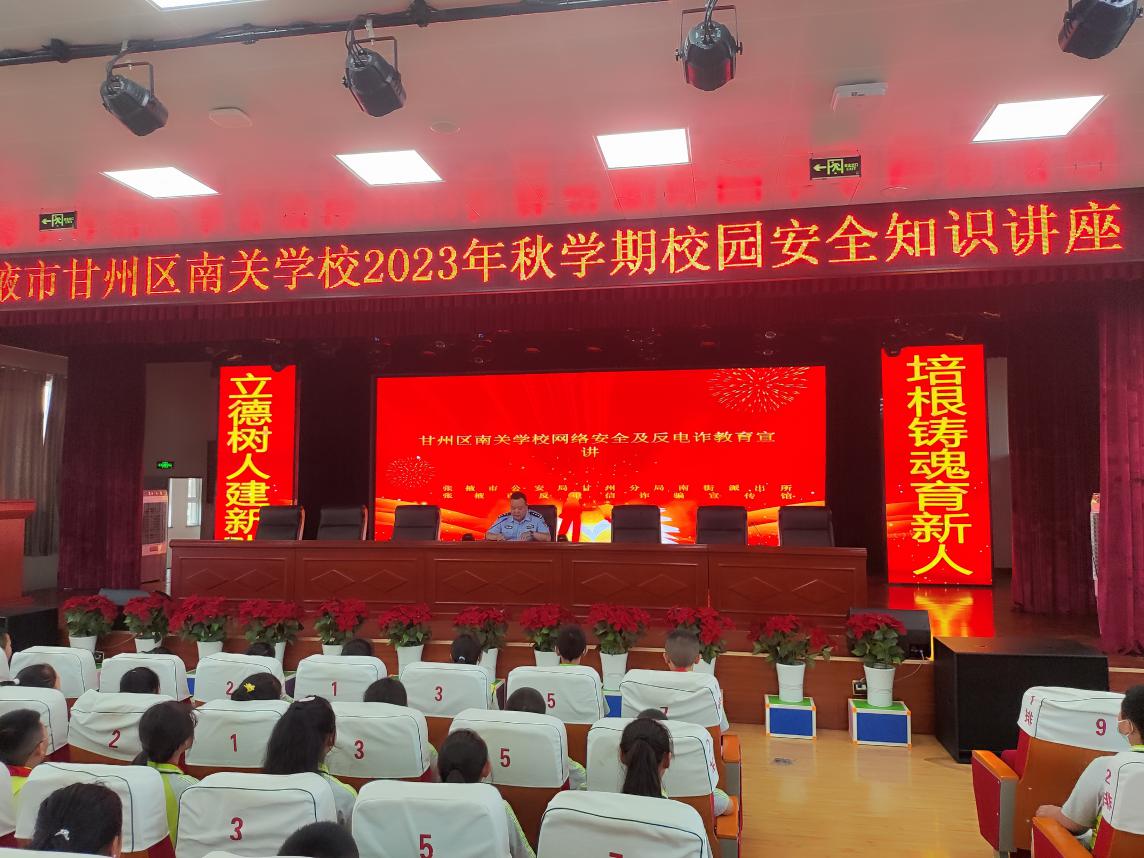 當(dāng)天,南關(guān)學(xué)校法制副校長張向陽精心準(zhǔn)備課件,入校開展專題講座,進一步提升師生安全和法律意識。講座針對青少年好奇心強、辨別能力弱的特點,重點講解了未成年人自我保護法律常識、校園安全及校外水電、交通、消防安全等知識,推進青少年學(xué)法守法、防詐、禁毒教育,有效預(yù)防未成年人違法犯罪,增強學(xué)生的法制觀念和法律意識。同時結(jié)合未成年人受騙、犯罪的典型實例,以案釋法、依法論事,引導(dǎo)同學(xué)們增強網(wǎng)絡(luò)安全防范意識,增強自我保護能力,引導(dǎo)同學(xué)們在學(xué)習(xí)和生活中嚴格遵守校紀(jì)校規(guī),自覺預(yù)防、抵制不法侵害。