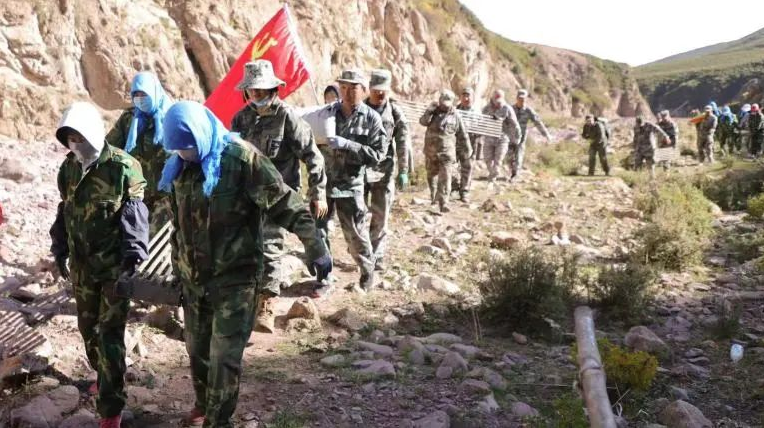 因進入目的地的道路無法通過車輛,76名黨員干部徒步行進、人背肩抗,多次負重往返,將2噸水泥,19個篦子及所需鋼筋從八號洞口背至一號洞口。材料運送完成后,全體黨員又經過近兩個小時的辛苦勞動,完成了水源地壩體及攔截管路的清淤加固。
