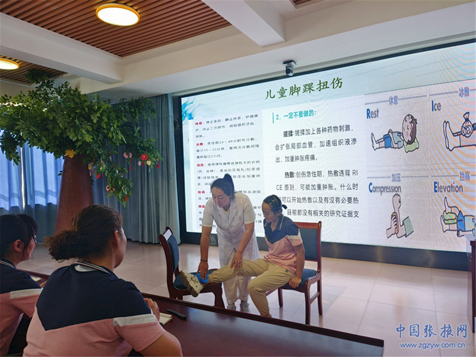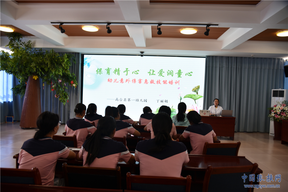 中國張掖網高臺訊 為提高教師的安全意識,豐富急救知識,保證幼兒生命安全,9月14日,高臺縣第一幼兒園保健醫生向全體保育員進行了“幼兒意外傷害急救技能”專題培訓。