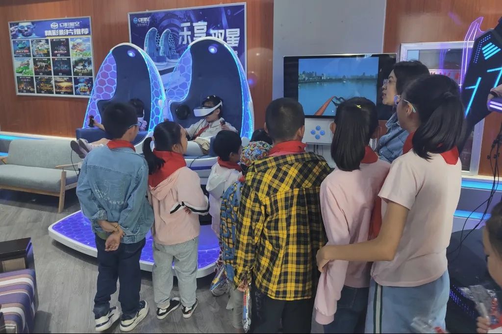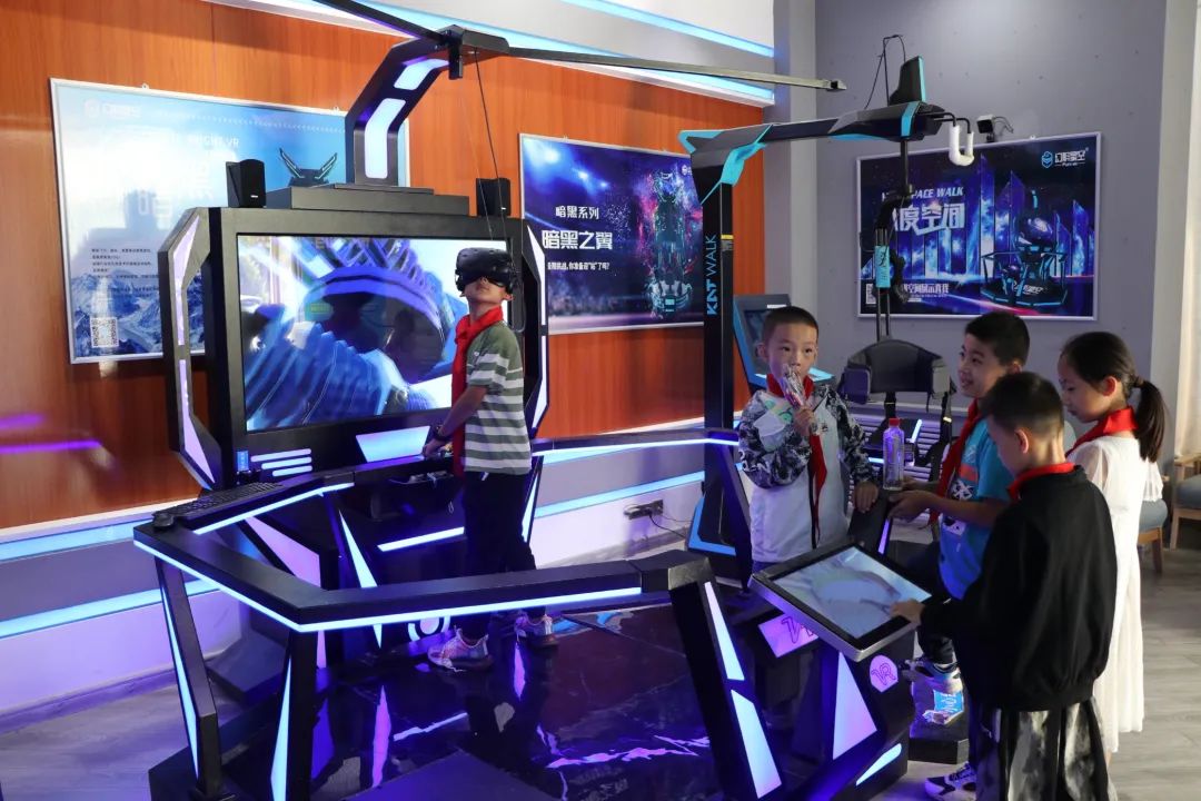 在VR科技館,少先隊(duì)員們被這些有趣而又充滿神奇魅力的科學(xué)設(shè)備深深震撼,借助以科技信息化為載體的VR科普平臺和科普設(shè)施,大家戴上VR眼鏡穿越體驗(yàn),感受到了在課本上學(xué)不到的壯麗景觀。