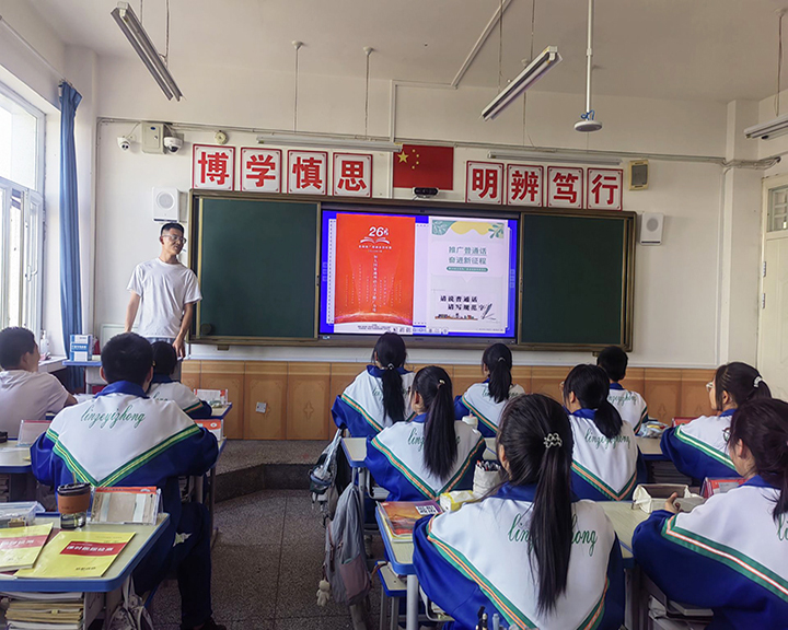 中國張掖網(wǎng)臨澤訊 9月11日至9月17日為全國第26屆推廣普通話宣傳周,為更好落實《中華人民共和國國家通用語言文字法》,大力推廣普通話,進一步提高全校師生、家長運用國家通用語言文字的能力,弘揚中華優(yōu)秀文化傳統(tǒng),營造良好的語言環(huán)境,臨澤縣第一中學(xué)圍繞“推廣普通話奮進新征程”的活動主題,開展了豐富多彩的推普周系列宣傳活動。