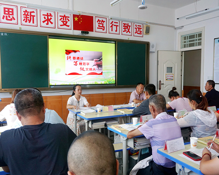 學(xué)校重視氛圍營造,教室樓道張貼推廣普通話宣傳標語;樓廳電子屏滾動播放普通話相關(guān)常識;校園電子橫幅及樓廳內(nèi)“推廣普通話奮進新征程”的標語赫然醒目;組織主題升旗儀式,向全校師生發(fā)出《說普通話,寫規(guī)范字,做新時代的推普員》的倡議;開展主題班會活動,增強學(xué)生說普通話寫規(guī)范字的意識,鼓勵學(xué)生爭做推普宣傳;開展激情晨讀活動,用“晨讀+推普”的模式在師生中傳承中華優(yōu)秀傳統(tǒng)文化;堅持課前十分鐘書寫練習(xí),引導(dǎo)學(xué)生正確地書寫和規(guī)范的應(yīng)用漢字;充分利用家校聯(lián)系釘釘群及家長會之機,以“倡議書”的形式向家長廣泛宣傳推廣普通話的重要意義。