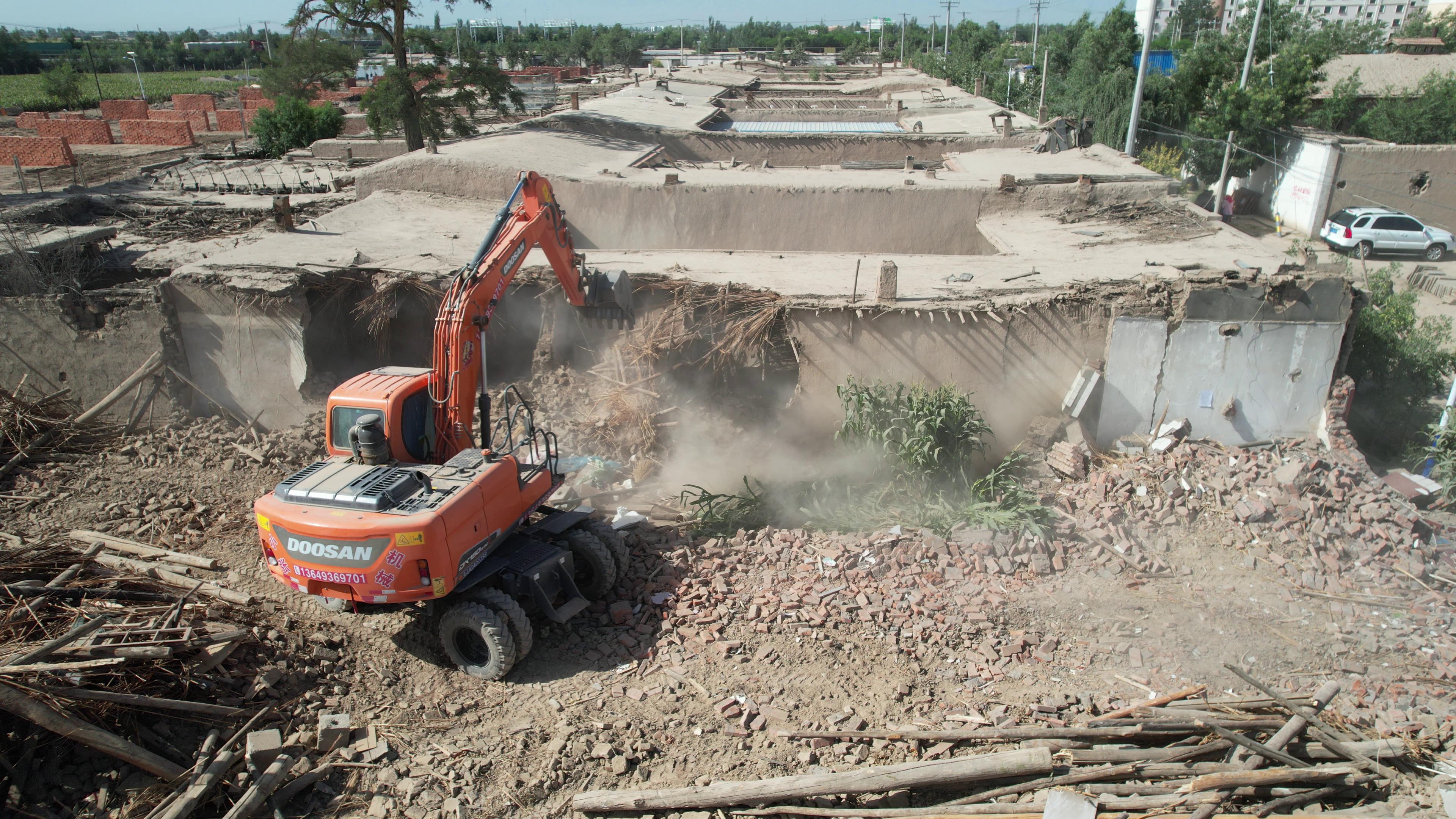近日,在梁家墩鎮(zhèn)四閘村,大型設(shè)備已陸續(xù)入場,施工現(xiàn)場工人們分工明確、各司其職,加足馬力開展老舊房屋拆除工作。