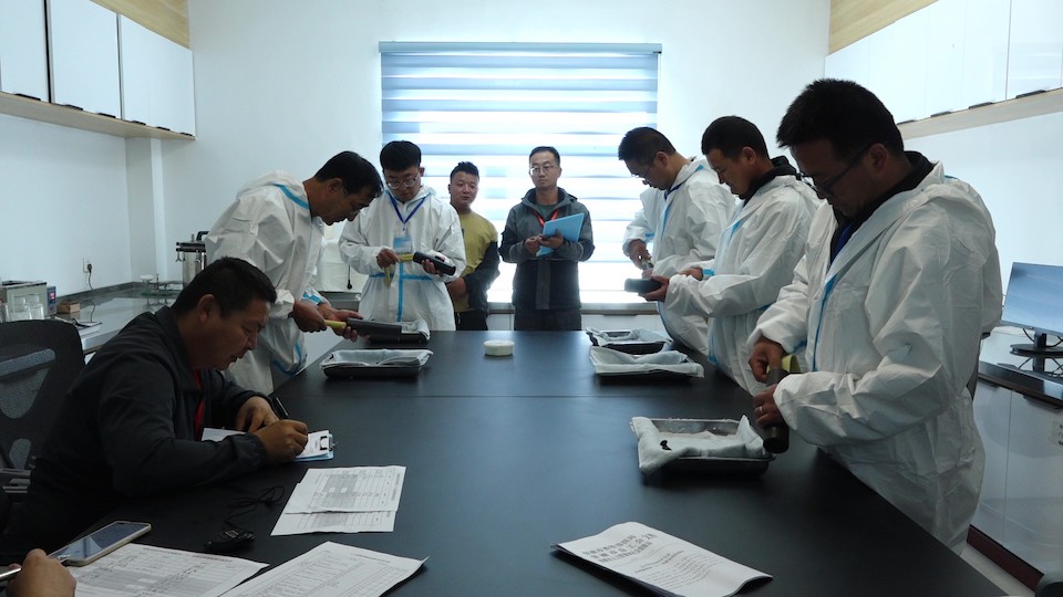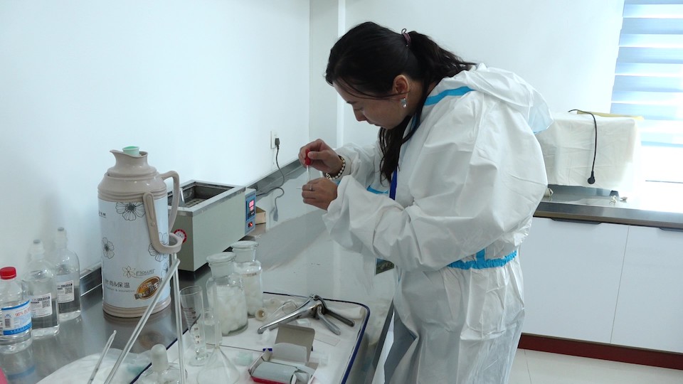 競賽采取理論知識考試和現場技能操作考核相結合的形式,其中理論知識考試占30%,現場技能操作考核占70%,包括羊的精液質量評定、發情鑒定和人工授精等專業知識。共有5支代表隊24名家畜繁殖員參加競賽,選手們精準操作,展現了良好的理論功底和嫻熟的操作技能。