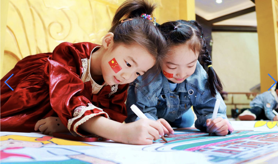 舉辦“百米長卷迎國慶·最美童心繪祖國”主題活動,用斑斕的畫筆繪就百米畫卷,表達對祖國的熱愛與祝福。一雙雙魔力手,一顆顆童真心,絢麗的顏料,神奇的畫筆繪出創造力。鮮艷的五星紅旗,雄偉的天安門,直上云霄的火箭,宏偉的長城……孩子們與家長及志愿者們或趴著,或跪著,或蹲著,神情專注而認真,將自己心中最真實、最夢幻的創意,在百米長卷上盡情地涂抹揮灑,繪出對祖國傳統文化、輝煌成就的贊美以及對未來的美好憧憬,以獨特的方式向祖國獻上了自己的祝福。