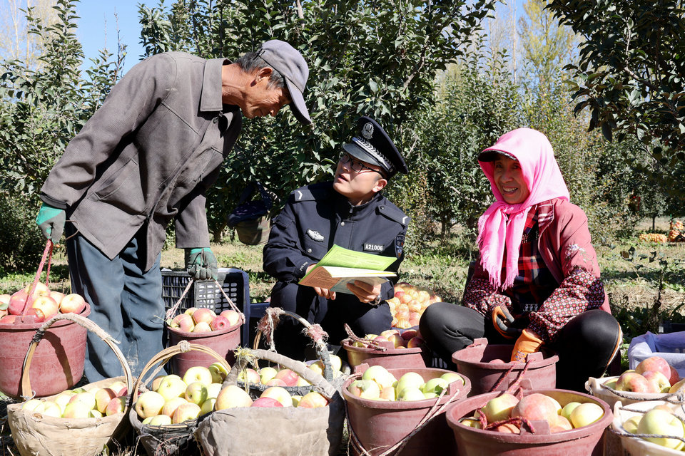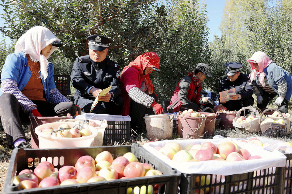 中國張掖網訊 金秋時節,張掖市的蘋果進入采摘期,果農們搶抓晴好天氣進行采摘、包裝、運送,果園里一派豐收景象。10月19日,張掖市公安局甘州分局小滿派出所民輔警走進轄區果園,一邊忙著幫果農收蘋果,一邊通過講解常見的詐騙手段和典型案例等方式向果農說明反詐知識和“國家反詐中心”APP的下載安裝以及使用方法。提醒大家在生活中要提高安全防范意識,注意保護好個人信息,提高警惕,防止上當受騙。同時,派出所民輔警通過與果農面對面交談、發放交通安全宣傳資料、講解道路交通法律法規等方式,讓大家了解到運輸過程中農用車違法載人、超員、超載、騎乘摩托車未戴頭盔等交通違法行為的危害性,引導果農自覺遵守道路交通法律法規,養成安全、文明的出行習慣。(馬興國)