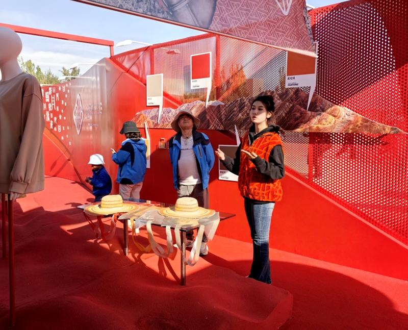 走進張掖文旅官方品牌“一品丹霞”快閃店,身穿出彩抓絨“紅馬甲”的青年志愿者們散布在快閃店各個角落,或面對面耐心細致的為現場參觀體驗的游客進行介紹,或熱情的為線上直播間的觀眾朋友進行詳細講解。