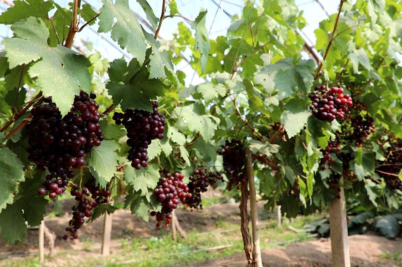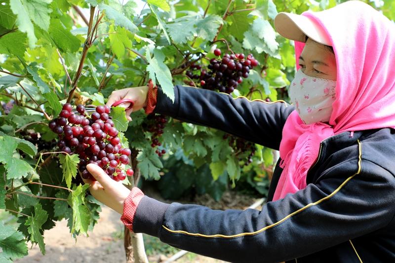 “我家葡萄從種植到掛果,施的是農家肥。葡萄掛果時,為葡萄套上專用袋,使葡萄透氣又不被雨水沖刷,保證了果實甜度。”新華鎮向前村四社葡萄種植戶陳天兵介紹。向前村有近10余年的葡萄種植歷史,葡萄產業已成為該村發展經濟的主導產業。葡萄品種大多以紅提為主,同時有陽光玫瑰、藍寶石等系列名優新特品種,葡萄含糖量高,粒大皮薄、色艷肉厚,每逢葡萄成熟季節,總有成群結隊的各地市民利用節假日驅車前往向前村,體驗采摘樂趣。今年,向前村積極謀劃,從良種優選、基地施肥、后期管護、套裝種植等方面統一標準、嚴格把關,達到無農藥、無公害綠色生態水果要求,不斷放大葡萄經濟效益,以實現既增產又增收,從而帶動更多老百姓走向致富之路,為全鎮鄉村振興增添活力。“葡萄的保鮮期不長,以前農戶都擔心自家的葡萄放不了多久就會爛掉,現在我們聯系好了冷庫,來不及在保鮮期銷售出去的葡萄可以儲存在冷庫里。”向前村黨總支書記王正岳說。