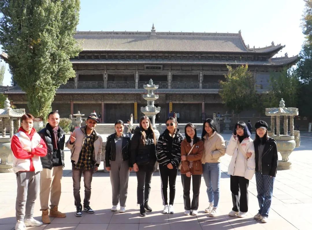 在甘州區(qū)博物館和張掖大佛寺,研學(xué)團(tuán)青年留學(xué)生們在講解員的耐心講解下,感受了華夏文明傳承區(qū)絲路文化的發(fā)展歷程及古絲綢之路重鎮(zhèn)的歷史變遷,聆聽了甘州古城的悠悠歷史,近距離觀看了張掖大佛寺保存完好的建筑、雕塑、壁畫、佛經(jīng)等各類經(jīng)書古籍和文物遺跡,了解了大佛寺在絲綢之路上的重要地位和深遠(yuǎn)影響,真切體會到了甘州的美麗和深厚的歷史底蘊(yùn)。