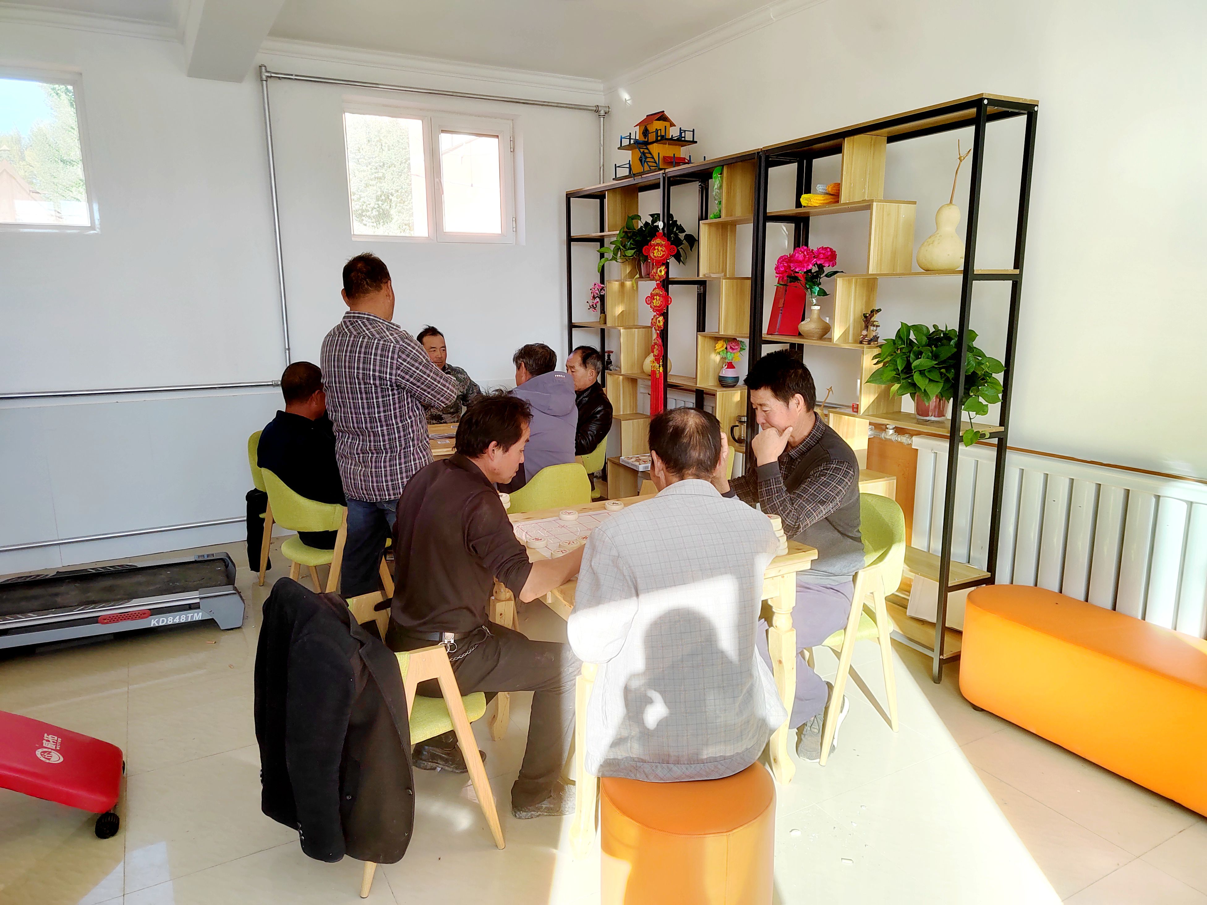 互助幸福院外綠樹成蔭,長廊上老奶奶們說著家長里短,逸老亭和集賢亭里老爺爺們議論著村里的變化,互助院內(nèi)老人們或打牌,或看書,享受著老年生活。