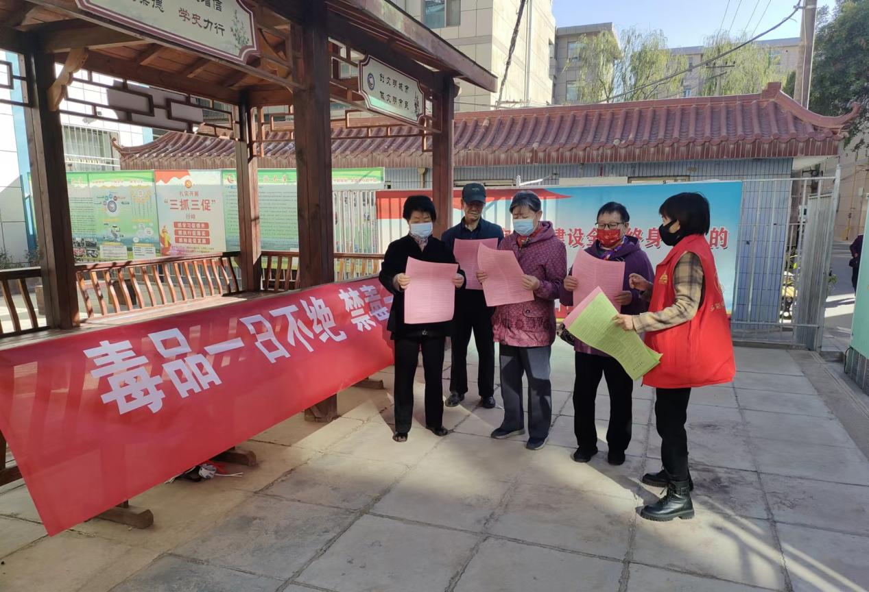中國張掖網甘州訊 為進一步增強轄區居民禁毒意識,擴大禁毒宣傳覆蓋面和影響力,積極營造全民禁毒氛圍。近日,甘州區南街南關社區在轄區怡園小區廣場開展禁毒集中宣傳活動。