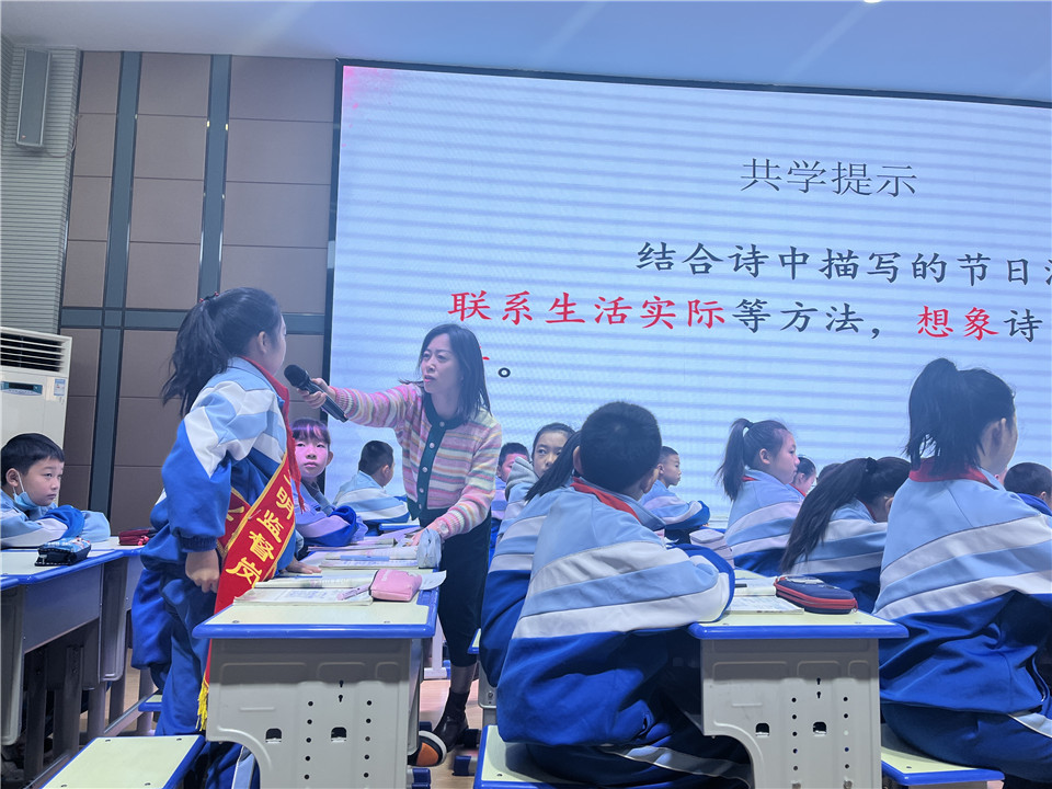 本次群文閱讀課例展示活動呈現了《古詩中的傳統節日》《神奇的洪水神話》《讓童年綻放絢麗的色彩》《小小詩歌有童趣》等四節精彩紛呈的群文閱讀課。課堂上,老師們語言生動有趣,課堂駕馭能力強,文本處理恰當;在拓寬學生視野的同時,教給學生閱讀技巧,充分體現了以學生為主體的閱讀教學理念。