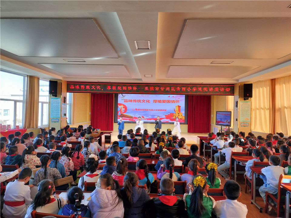 中國張掖網甘州訊 為扎實開展“三抓三促”行動,積極推進文明校園建設,全面貫徹“雙減”工作精神,把“愛國的種子”種在孩子們心中,11月23日,甘州區青西小學開展了以“品味傳統文化,厚植愛國情懷”為主題的道德講堂活動。