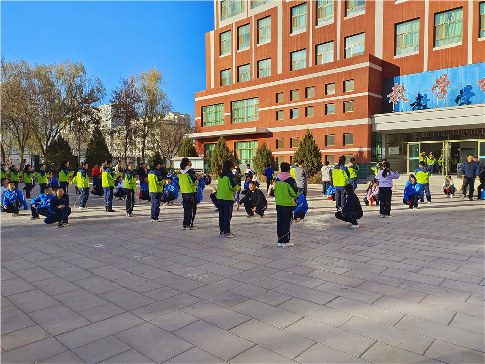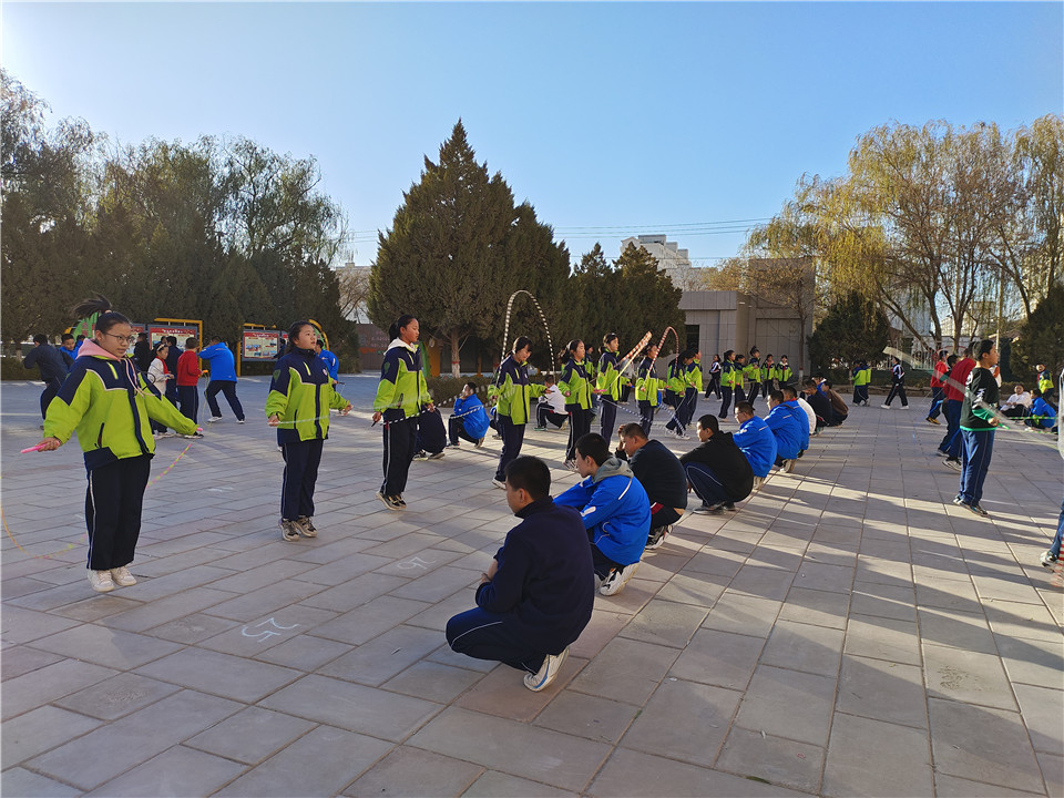 揮動的繩索如銀蛇般飛舞,跳動的孩子似彩蝶般紛飛。激情與緊張齊在,友誼與比賽同存。通過比賽,既鍛煉了學生們的身體,又愉悅了身心,豐富了他們的課間生活,促進了高臺縣董振堂紅軍小學學生素質的全面發展。