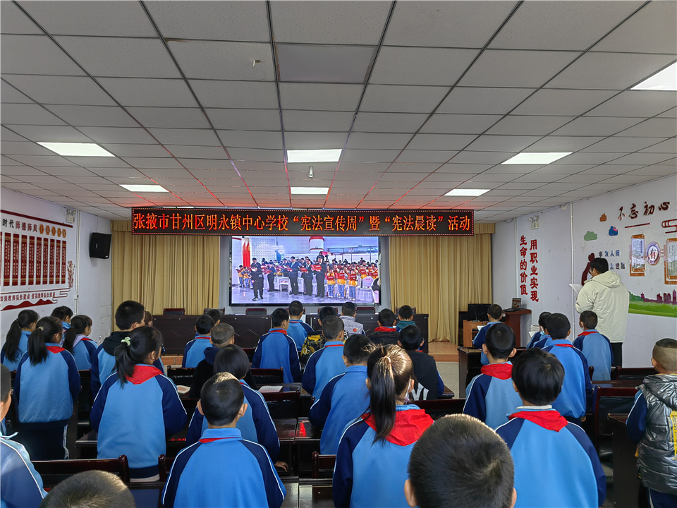 中國張掖網甘州訊 在第十個國家憲法日來臨之際,12月4日,甘州區教育系統52所中小學和幼兒園開展了以“大力弘揚憲法精神 建設社會主義法治文化”為主題的2023年“國家憲法日”暨“憲法晨讀”活動。本次活動作為2023年“憲法宣傳周”系列活動的重要組成部分,為全區師生學習宣傳憲法,促進普法與教育實踐深入結合發揮了顯著推動作用。