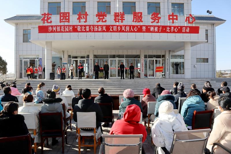 這邊好媳婦、好婆婆、好鄰里等先進家庭“敬比賽夸”開展得熱火朝天,那邊“曬被子·比孝心”現場也是如火如荼。每家每戶紛紛拿出自家老人過冬的被子進行晾曬評比,色彩斑斕的被子成了廣場上一道亮麗的風景線。