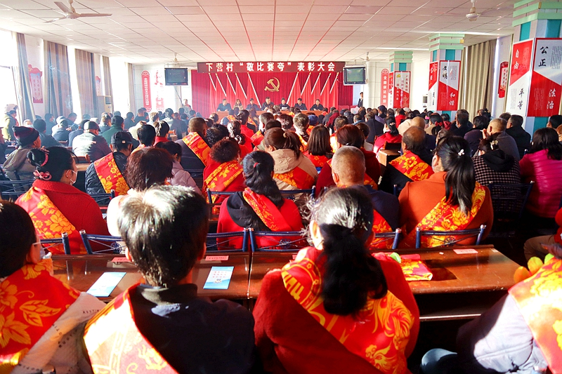 近日,倪家營鎮下營村會議室里人頭攢動、座無虛席,村上開展了一年一度的“敬比賽夸”表彰大會。