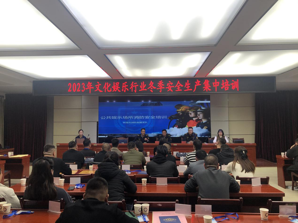 中國張掖網訊 元旦、春節雙節臨近,為做好節日期間文化娛樂行業的生產經營和安全工作,進一步提高娛樂行業企業安全管理水平,確保張掖市文化娛樂市場節日期間健康、安全、平穩、有序地運行,12月20日,張掖市文化廣電和旅游局組織舉辦2023文化娛樂行業冬季安全生產集中培訓,傳達學習了張掖市文化廣電和旅游局《關于做好全市文旅行業冬季防火和安全生產工作的通知》《關于做好歲末年初文旅行業安全生產工作的通知》精神,邀請市消防支隊相關負責人進行了安全生產專項培訓。會上還宣讀了《消除噪音污染環保幸福生活倡議書》《創建全國文明城市倡議書》《KTV娛樂場所誠信經營承諾書》,倡議娛樂場所經營者和消費者主動承擔社會責任,為城市文明建設做出積極貢獻。