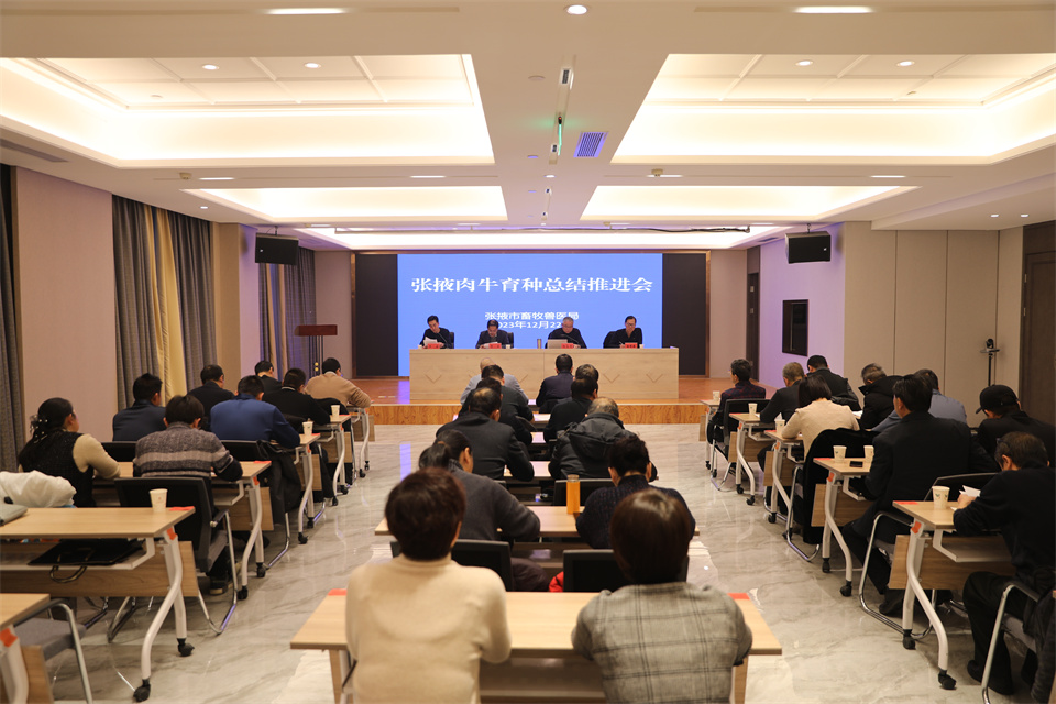 中國張掖網訊 為加快推進張掖肉牛新品種培育工作, 12月21-22日,2023年度張掖肉牛育種總結推進會在高臺縣順利召開,市畜牧獸醫局班子成員,局屬相關科室、站所負責人,甘州區、臨澤縣、高臺縣三縣區農業農村局副局長、畜牧站站長,市、縣區育種技術人員,14個育種場負責人,共43人參會。